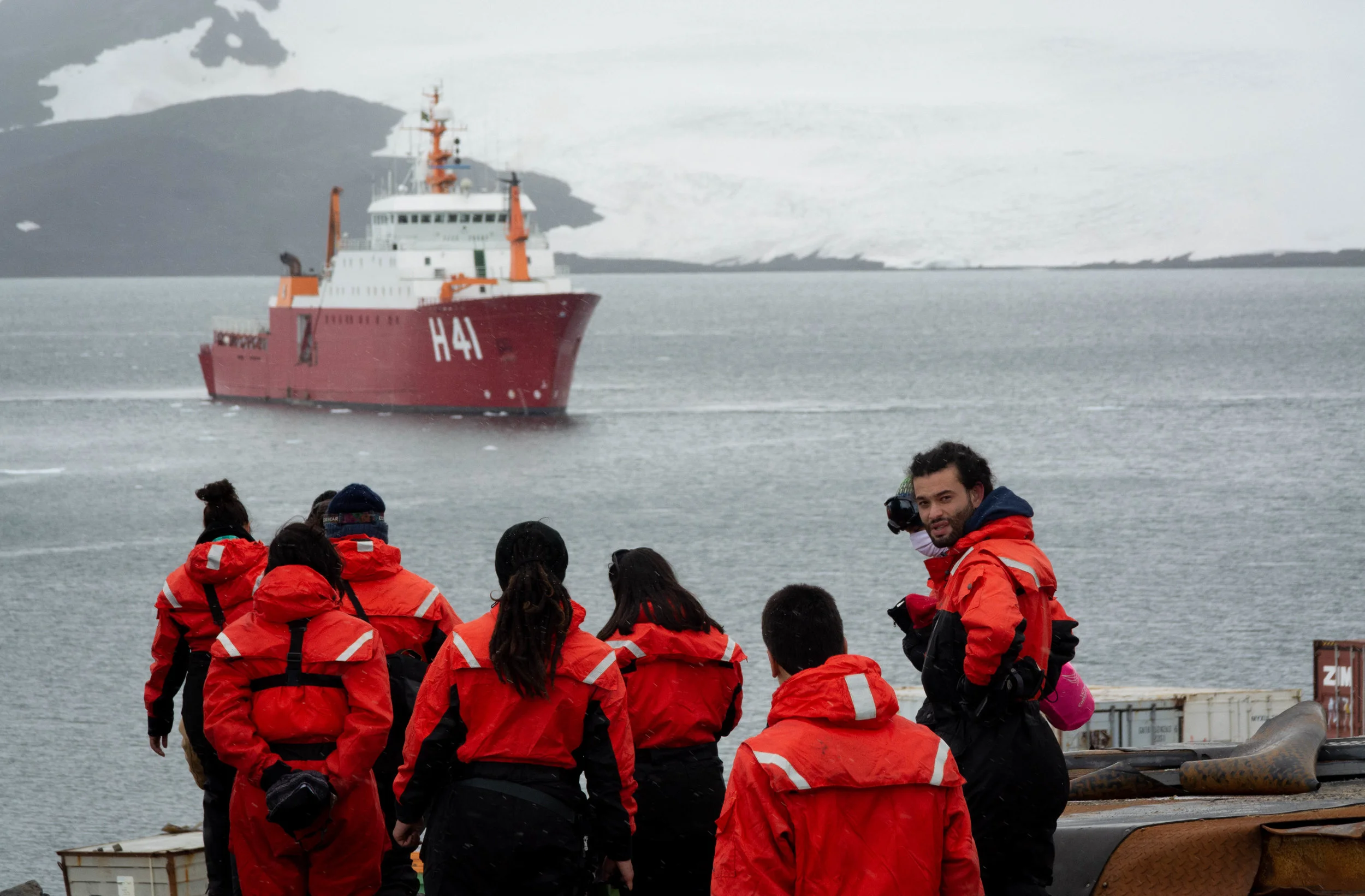 In front of King George Island, where the Brazilian Antarctic station Comandante Ferraz is being built.